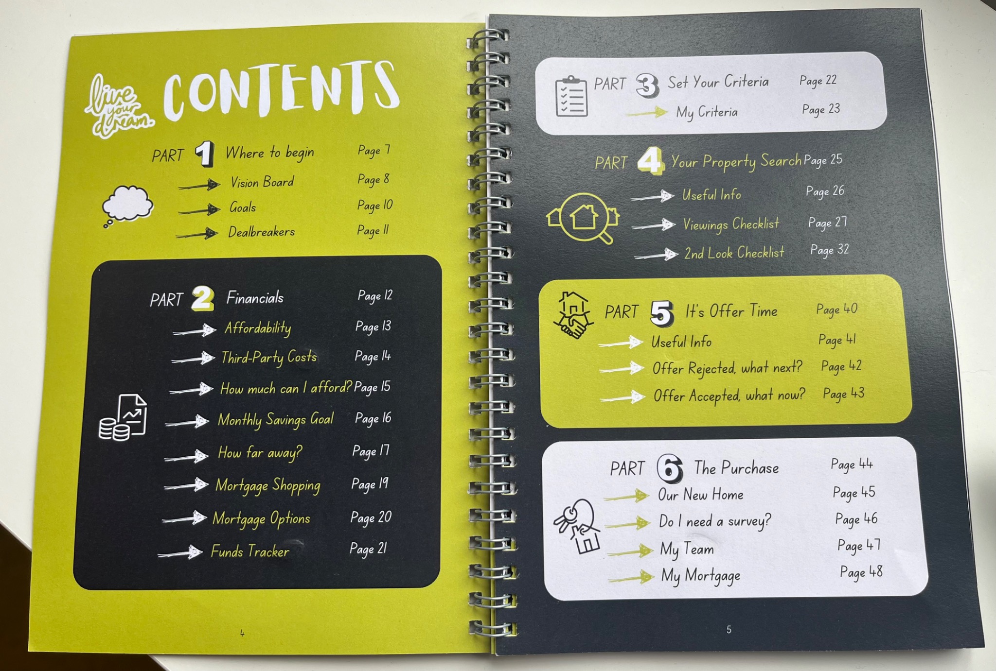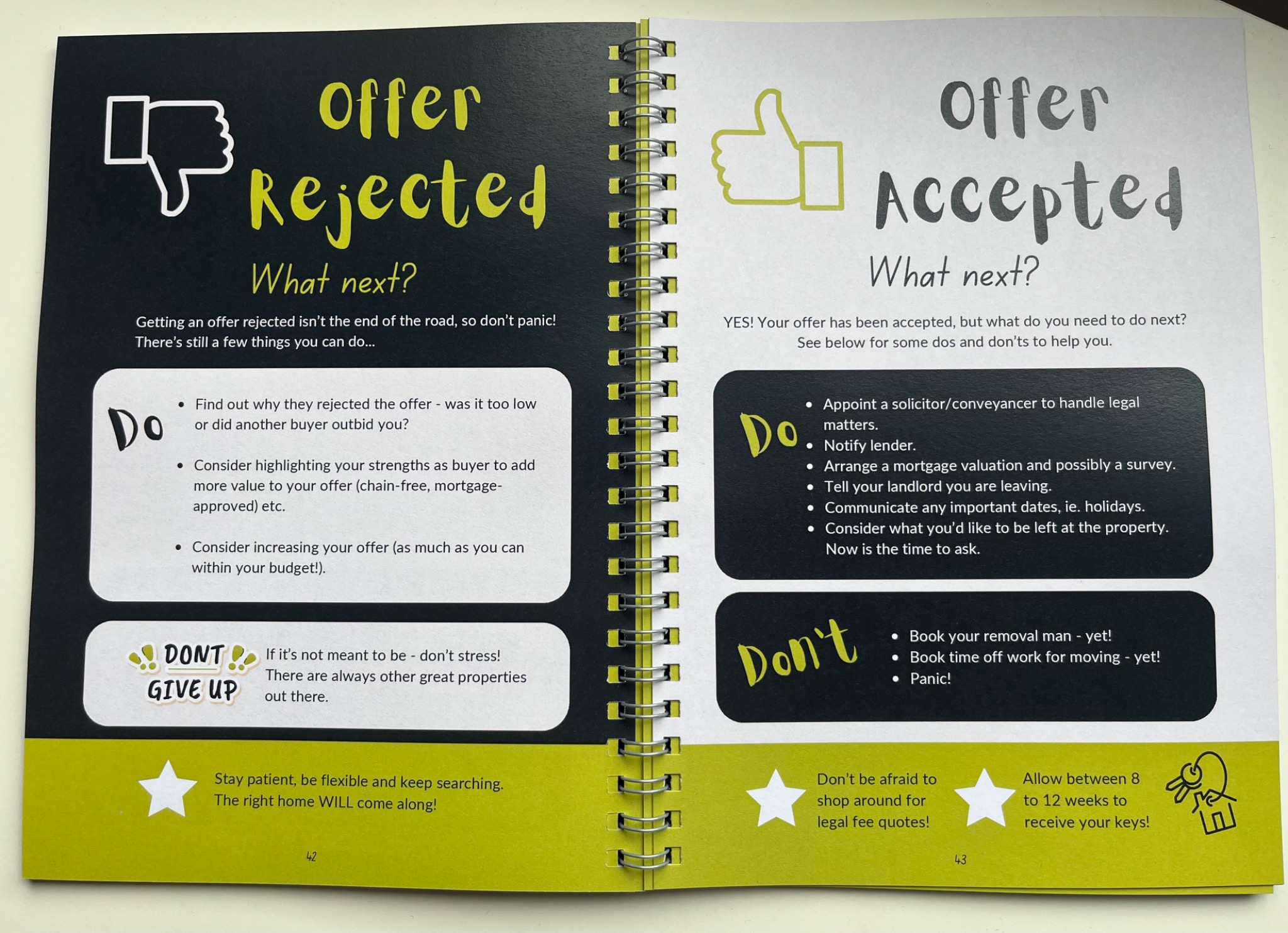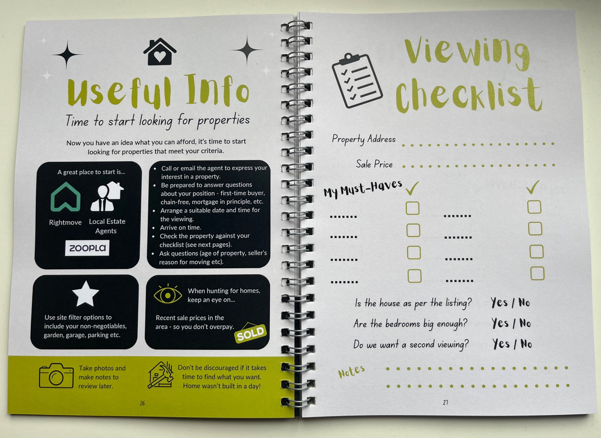 The result would be a professionally printed, wiro-bound 86-page booklet that homebuyers could use at each stage of the process to help them with their purchase.